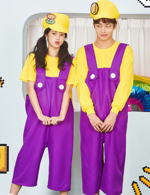 [ST550] 버섯돌이 보라 멜빵 [모자포함]