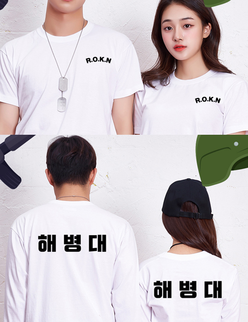 라운드 반팔 흰색(왼가슴-ROKN+등판-해병대 인쇄)
