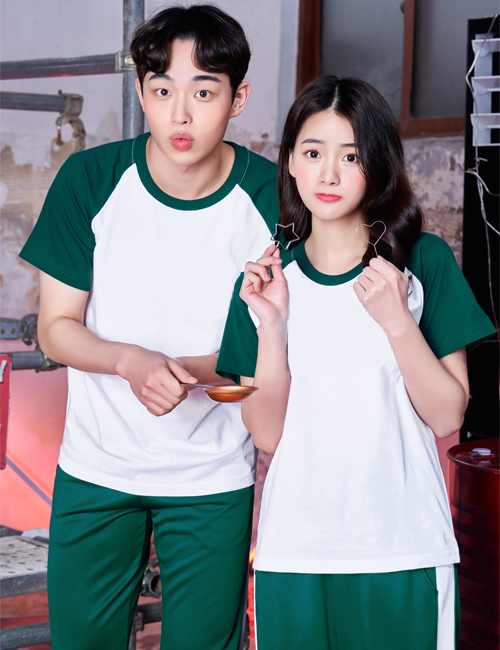 오징어 백수 츄리닝 진녹색 반티 세트 (ST860)