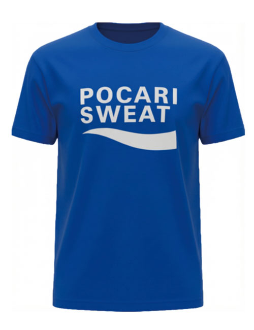 라운드 티셔츠 반팔 파랑(전면 포카리 인쇄)